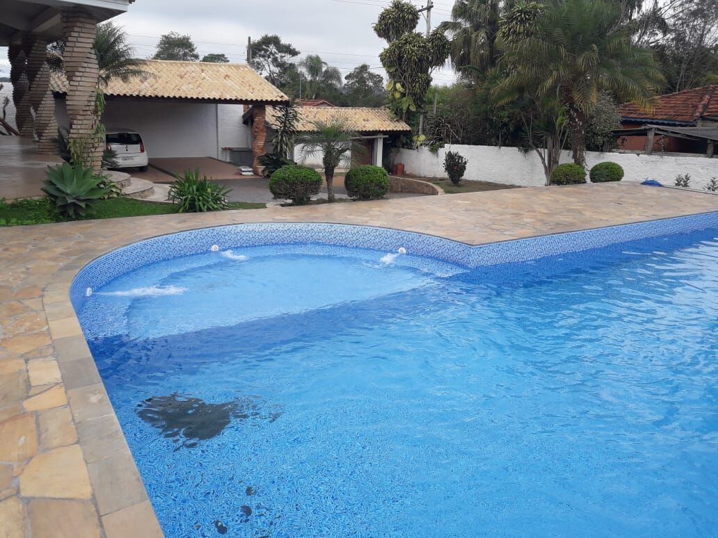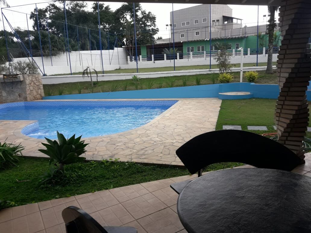 Piscina c/ cascata, campo futebol, gramado, vestiários, espaço churrasqueira c/ cozinha, salão de festa, toda murada, portão automático